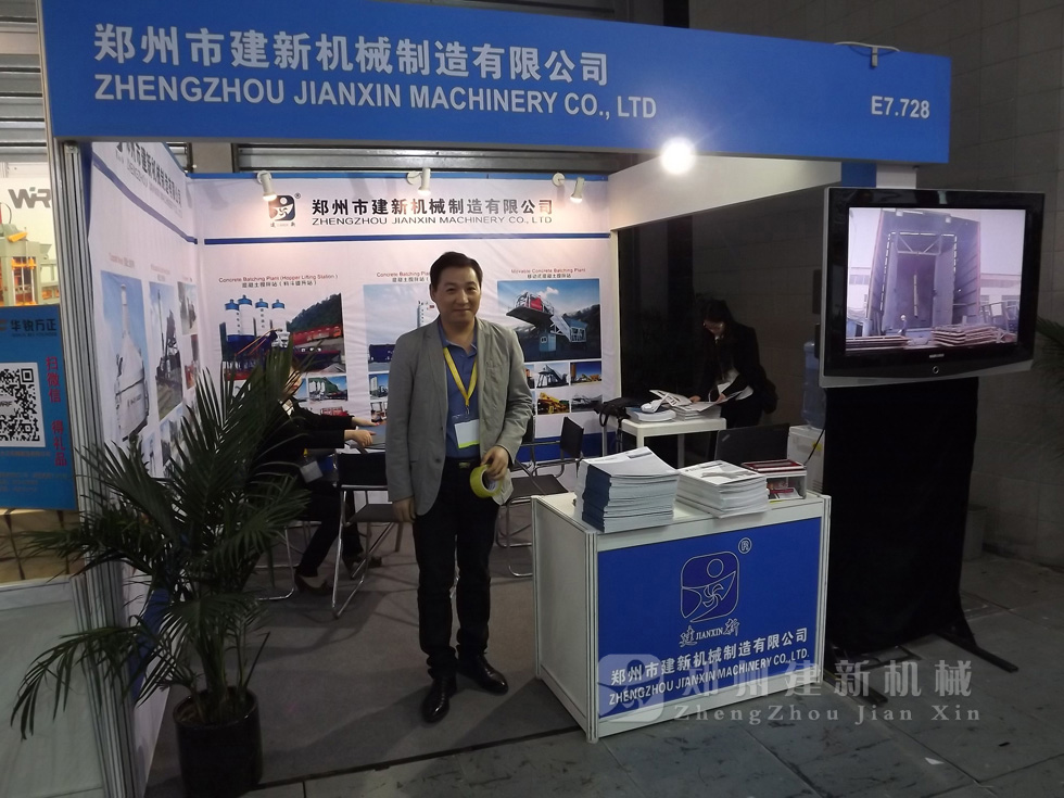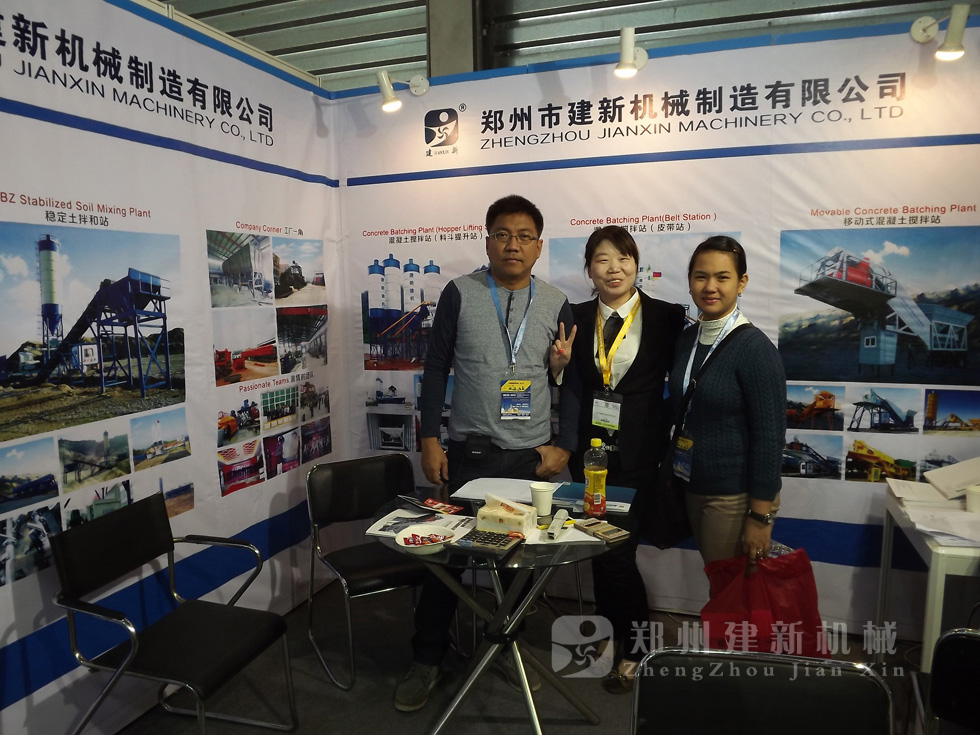 作为国内建筑机械行业里的一支跑军,郑州建新机械制造有限公司在2015年上海宝马机械展销会上,展示了建新公司大型混凝土搅拌站、稳定土拌和站全套设备,及建新JS系列双卧轴混凝土搅拌机、PLD砂石配料机、水泥仓等单机设备。